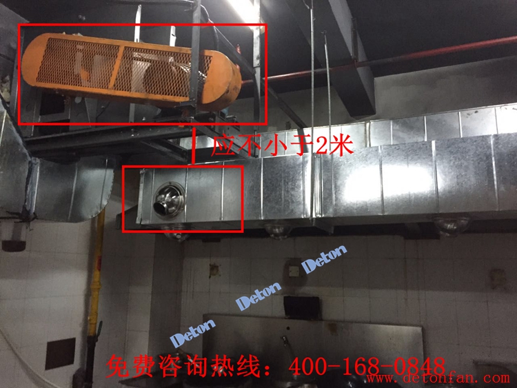 小分隊(duì)糾正:風(fēng)機(jī)與煙罩不能靠得太近(不小于2米),否則噪音過大。